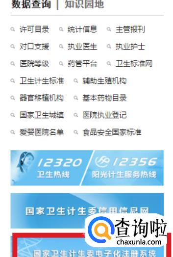 在官方网站上找到卫计委的电子化系统。点击进入。