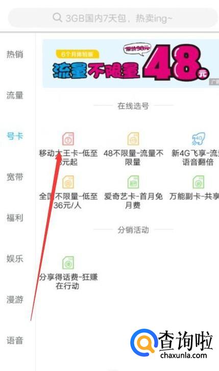 - 03                                                            然后找到移动的大王卡,然后进入选择,如下图。