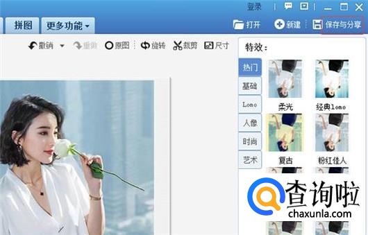 点击美图秀秀上方的“保存和分享”,就可以了,见下图