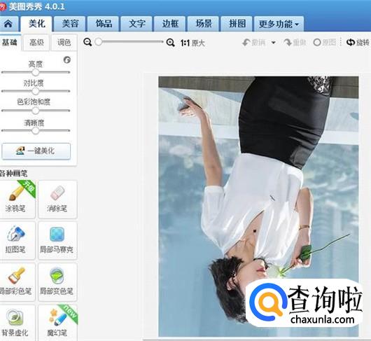 选择美图秀秀里面的“美化图片”,把手机拍倒的图片放进来,见下图