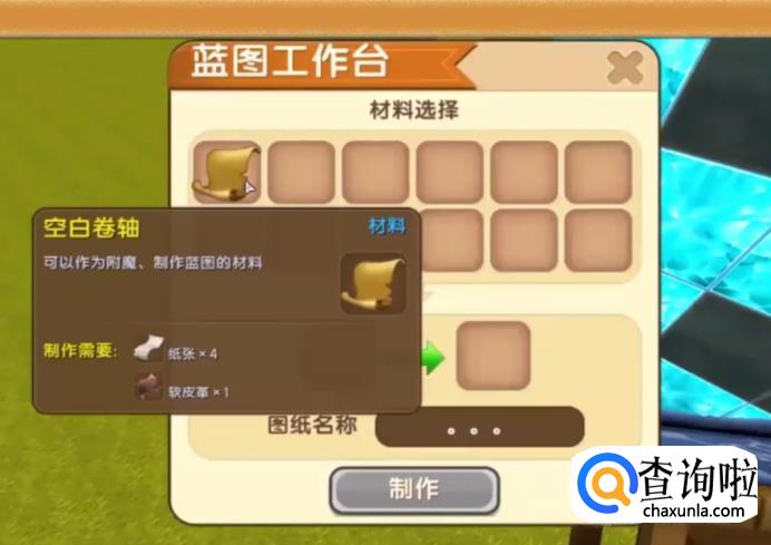 找到蓝图工作台,在里面找到空白卷轴。