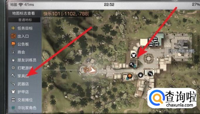 家具店在快乐101里面,就是进101第一条大马路路口左转第一家,小地图上显示的是锤子图标。
