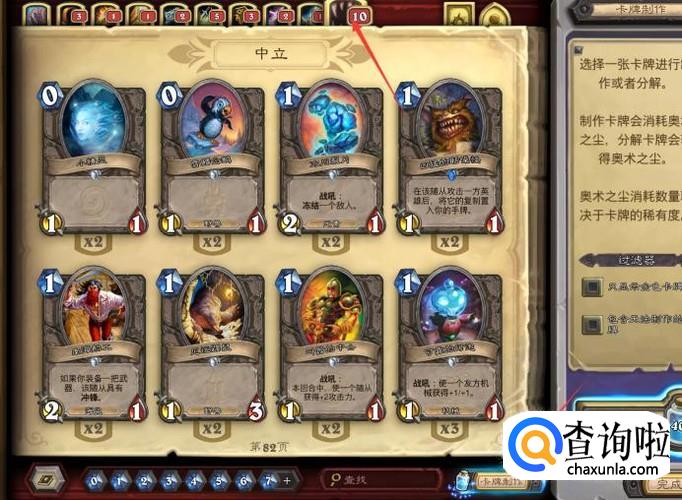 进入我的收藏,点击卡牌制作,然后找到中立卡牌。