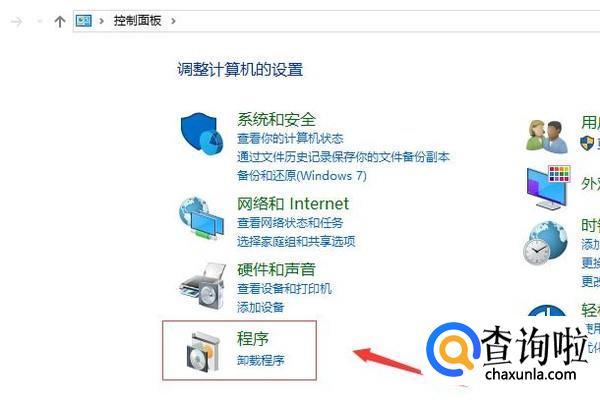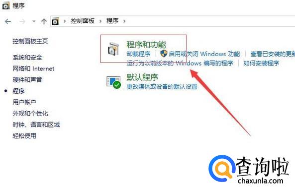 然后我们找到程序并点击,在程序里面,我们找到程序和功能,并点击。