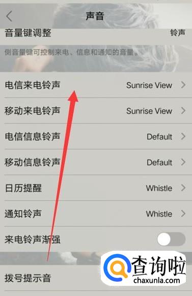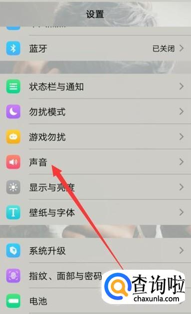 进入之后,点击“声音”,进入下一页面,如图所示。