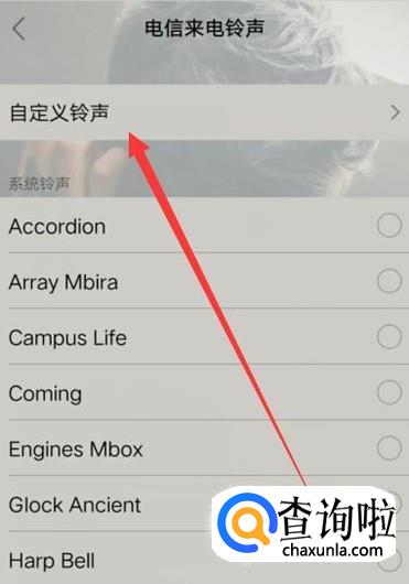 进入之后,点击“自定义铃声”,进入下一页面,如图所示。