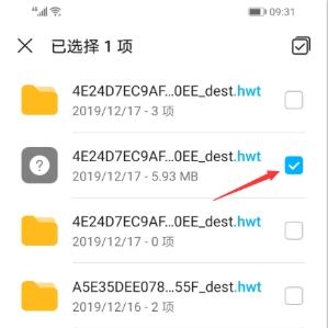 2、找到想要打开的.hwt文件并长按勾选它,点击移动