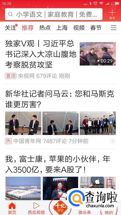 点击进去之后,可以看到手机下方中间的位置有一个“十亿现金”的图标,不过要保持是登录状态,如果没有登录的话,可以点右下角的“我的”登录一下。登录成功以后,再点击中间的“十亿现金”图标。