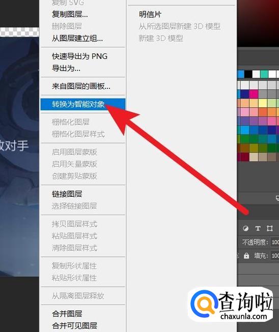 选中这几个图层后,在右键菜单中,选择转换为智能对象,这个时候,四个栅格化图层,转化成一个图层了。