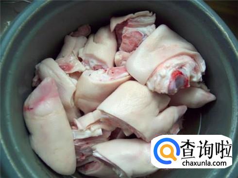 先把买来的猪脚清洗干净,上面的毛发是一点也不能留的,用小镊子一点点全部拔除,然后用小刀把表面刮一刮。