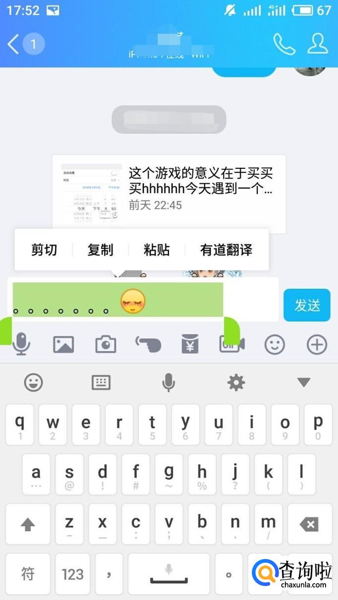 在聊天框中任意输入一段文字加入害羞表情必须是害羞才OK,然后剪切文字到红包口令。
