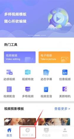 打开“清爽视频编辑器”APP,在首页下方的菜单栏中找到“视频工具”,点击进入视频工具页面。