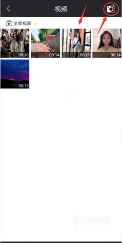 进入视频导入页面后,直接点击需要添加的视频即可导入成功。如果需要现场拍摄,可以点击右上角的“相机”图标。