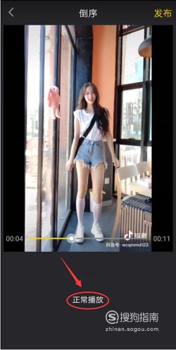 如果需要恢复正序播放,可以点击“正常播放”。如果不需要,可点击“发布”快速分享给好友。