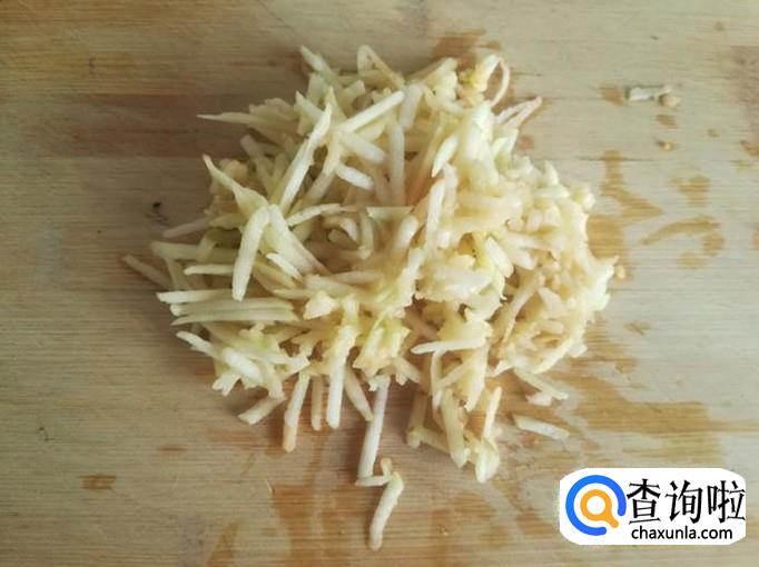 再把苹果用擦板擦成细丝。