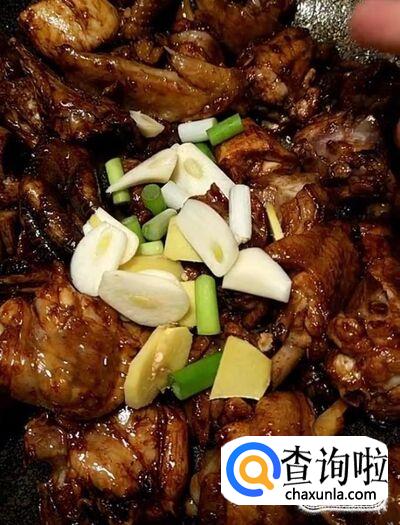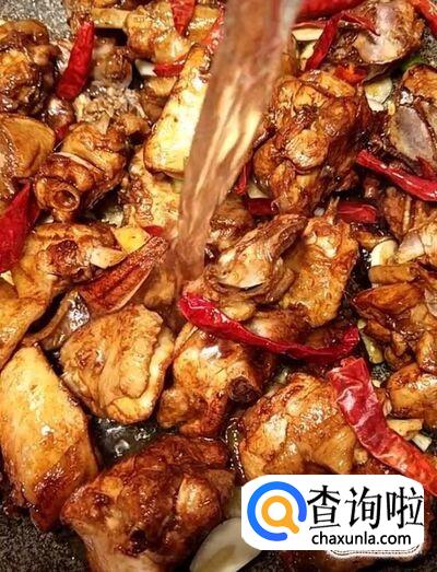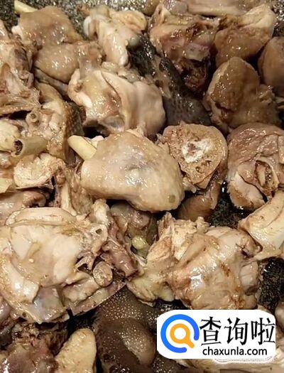 接着我们在锅中放入少许油,油热下入鸡块,炒至变色