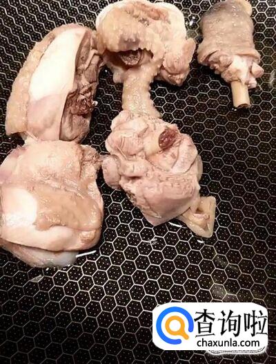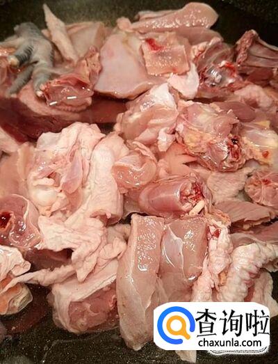 首先,我们将剁好的鸡块放入热水锅中,煮出血沫捞出清洗干净控干水分备用