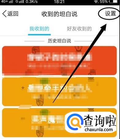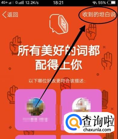 进入之后,点击右上角“收到的坦白说”进入下一界面,如图所示。