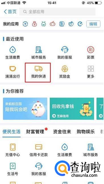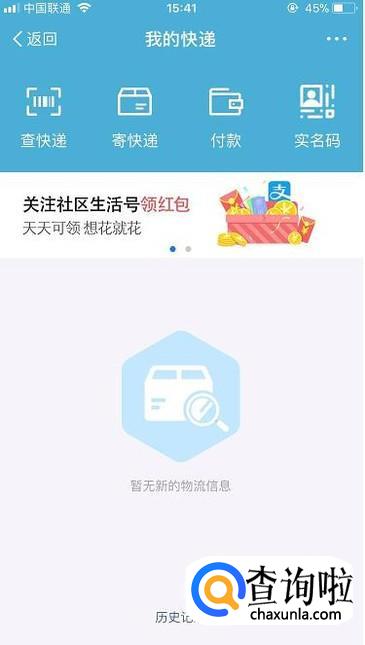 在我的快递中,可以通过快递单号查询个人的物流信息,也可以在这里邮寄快递,选择对应的物流公司,预约上门取件的时间。