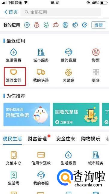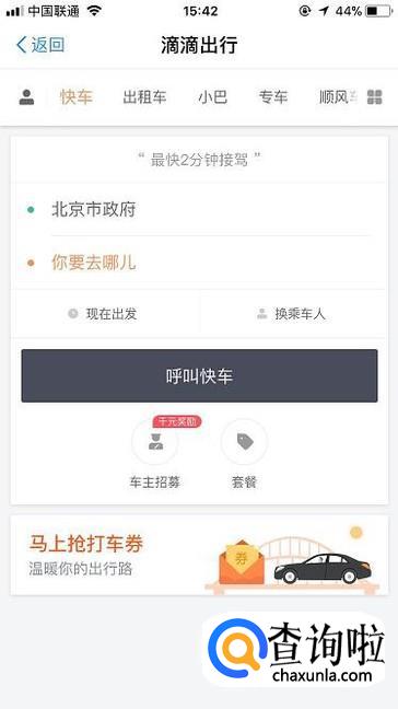 在滴滴出行中,输入自己的始发地和目的地,可以实现叫车业务。