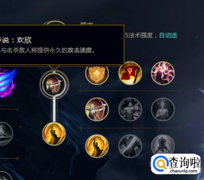 还有一些副系符文可以选择,比如欢欣和致命一击,欢欣在攻击敌人之后,可以提供永久的攻击速度,提高诺手的移动速度。