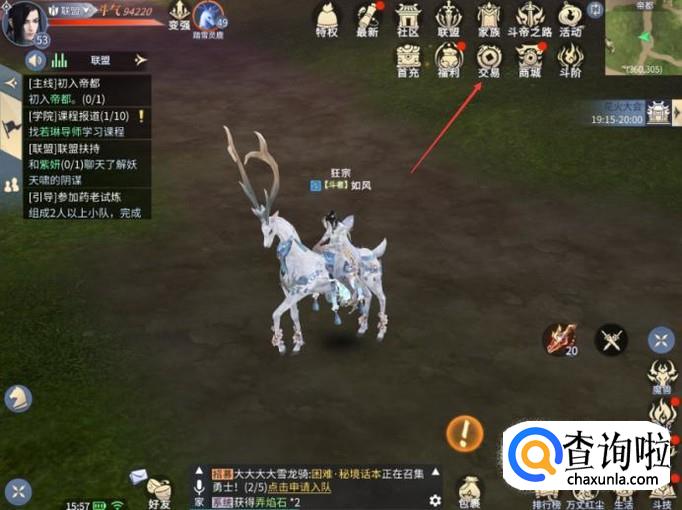 玩家想要交易,首先点击页面上方的【交易】功能。
