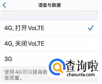 开通volte之后,最后再进入设置->蜂窝网络->蜂窝数据选项->语音与数据->选择“4G,打开VoLTE ”,启用VOLTE功能。