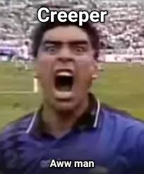 Creeper梗源于国外网友,其实就是歌唱接龙挑战,接龙的歌曲名为《Revenge》。Creeper?Aw man 像是一句通关密语,讲了A就要讲B,整段过程全靠素未谋面的网友们培养出的默契。