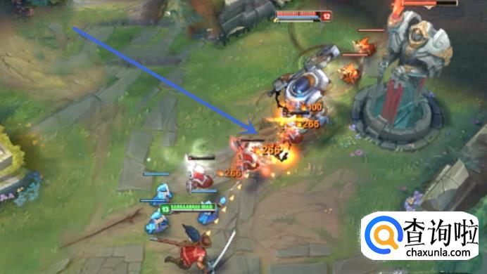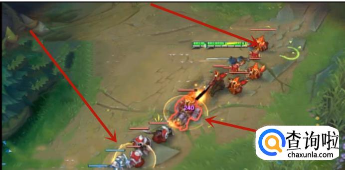 具体操作方法:E技能+A地板,即在E技能快结束的时候,朝着地板右击,接着马上对一个新目标使用E技能,这就是无缝E的效果。一般来说,E技能在使用完之后,亚索会自动的攻击目标,无法阻止的自动攻击造成的时间差可以通过右击地板来取消,从而实现无缝E的效果。如图所示,利用无缝E来对线每一波兵线的第一个第三个和第六个小兵,用于快速的追击敌人,如图中红色箭头所示。