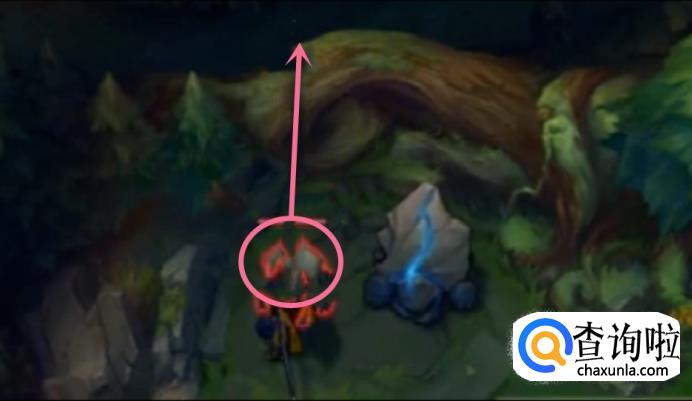 2. 塔外接大招效果 : 在越搭杀人的时候,或者当敌人躲在塔下的时候,可以使用该技能击杀敌人。 使用方法: 如图所示,鼠标移动到箭头所指示的位置然后使用R技能。我们可以通过鼠标的位置来确定亚索攻击敌人的位置,只要敌人入塔的距离不超过亚索Q攻击的范围,亚索就可以在塔外使用R技能攻击敌人,而不会受到塔的攻击。