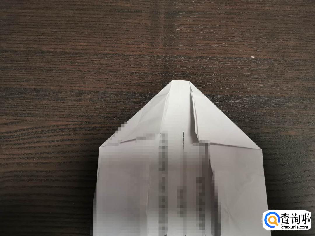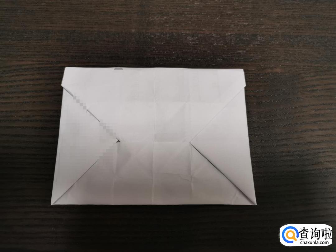 将上方两角折出一个三角形,但要离折痕处一定的距离,然后再将上端扣在下端就可以了。