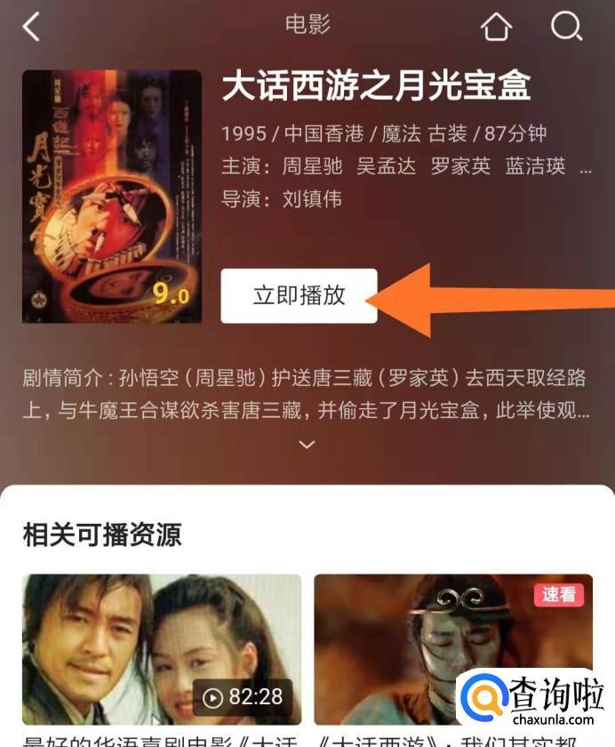 点进去,有个“立即播放”的按钮。再点击这个按钮,会出现播放页面。