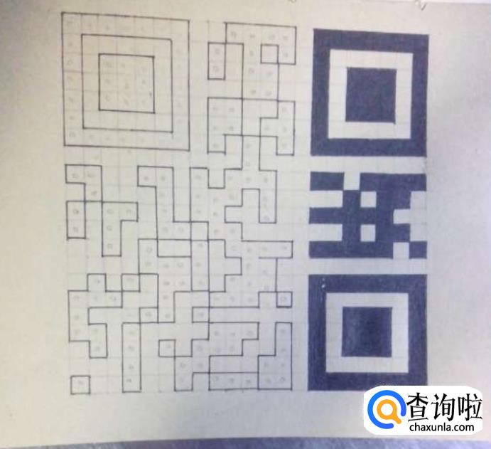 最后用橡皮擦把铅笔画的多余的格子擦掉,然后试一试二维码能不能扫出来。