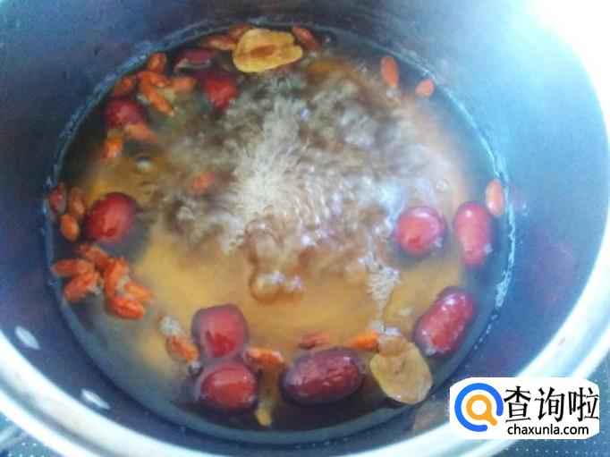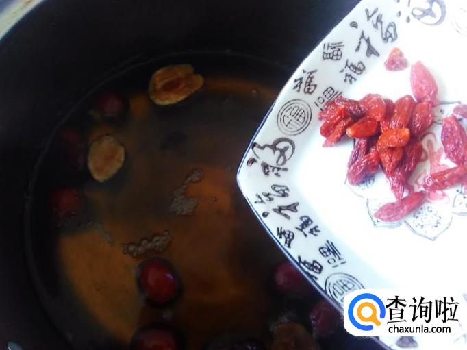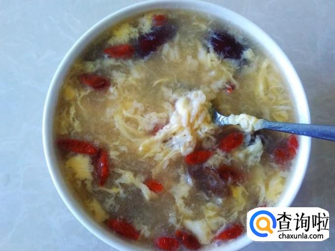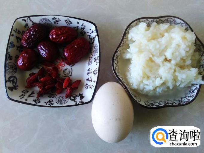 甜酒酿小半碗,鸡蛋1个,红枣、枸杞、土红糖适量。