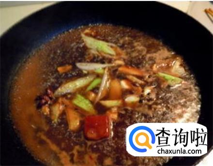锅里烧热油把狗肉放进去翻炒,变色之后加上生姜片、以及桂皮、生抽,加上清水没过狗肉,大火煮开小火慢炖。