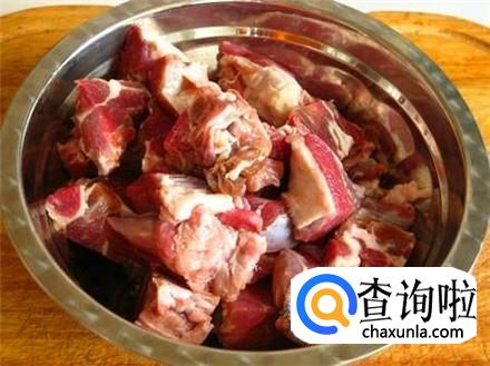 狗肉清洗干净,加清水浸泡二十分钟控干水分,然后切成块状。