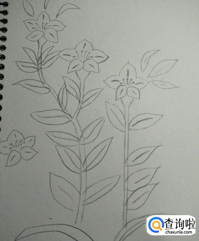 然后画出花杆花叶