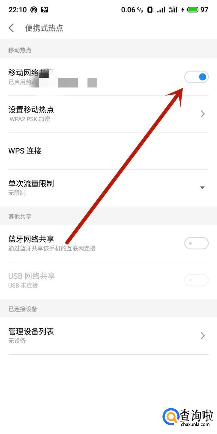 点击连接之后,手机即可连接上手机热点,如图所示。
