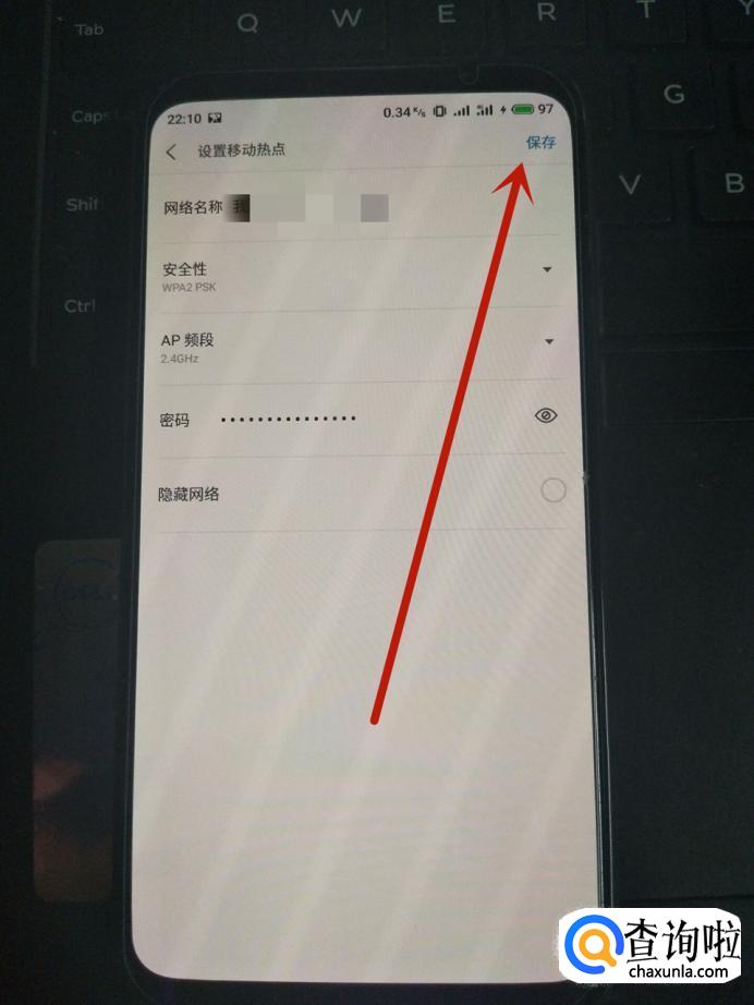进入之后,设置热点的名称和密码,点击“保存”,如图所示。