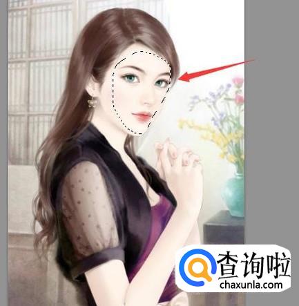 使用套索工具我们在人物的面部上画出需要的选区,如图所示: