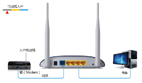 注意:宽带线一定连接到路由器WAN口,WAN口颜色与LAN口一般不同,电脑连接1234任意一个端口。