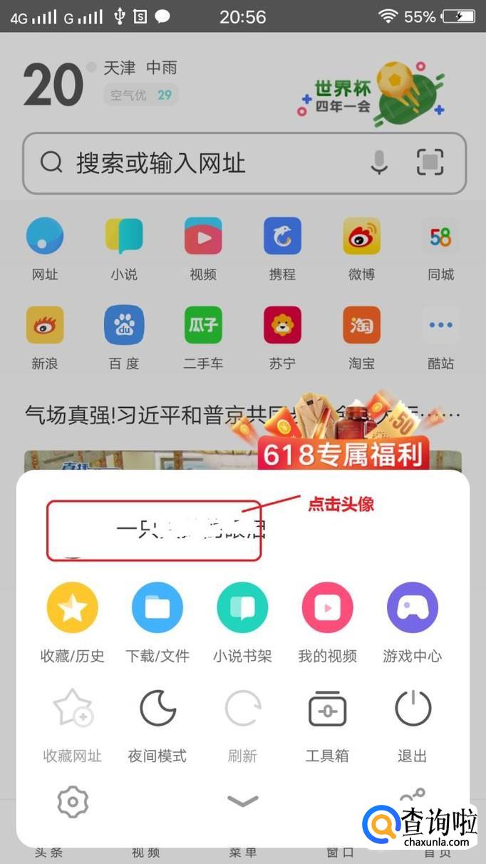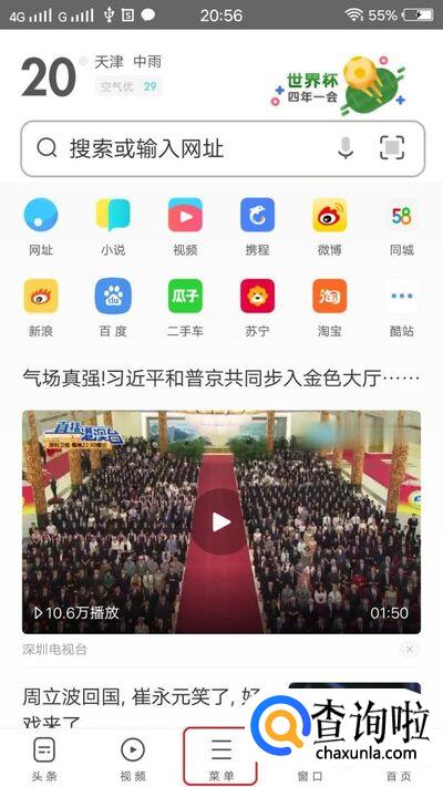 打开UC浏览器,如图所示,是这样的界面,我们点击页面底部“菜单”按钮,弹出菜单。