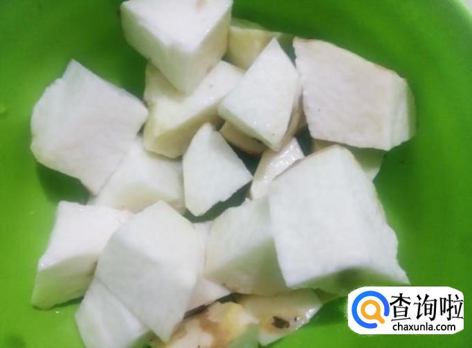 大薯去皮,然后切成棱角形一块块。