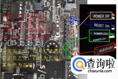 POWER LED:电源开关指示灯,显示电脑是否通电工作,分正负极,彩色的线为正极,白色的线为负极,接反了不亮