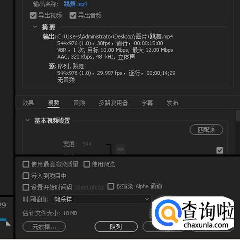 按CTRL+M,调出导出视频面板,在这里完成导出视频操作。