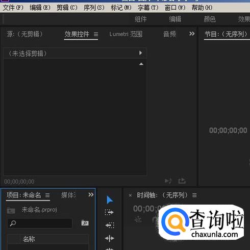 下面用PR软件来演示操作。启动PR软件,新建项目后,进入到操作界面中。