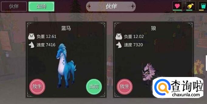 然后打开宠物栏,就可以看到蓝马在你的宠物列表下了。