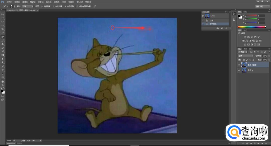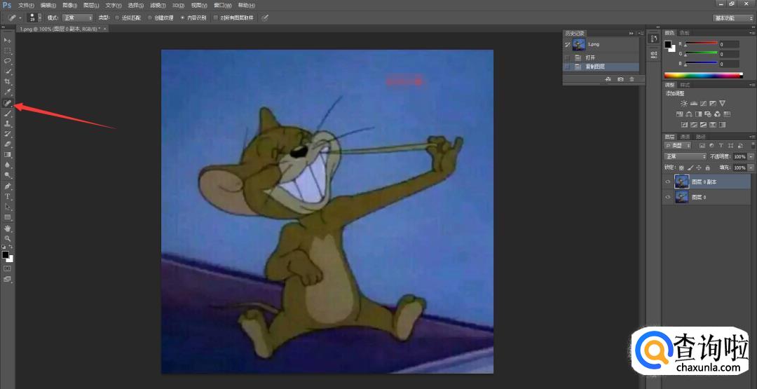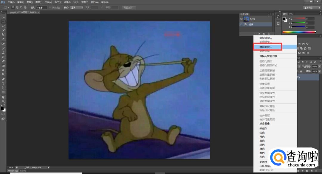 可以看见右上角有一片淡红色马赛克,先复制新图层: