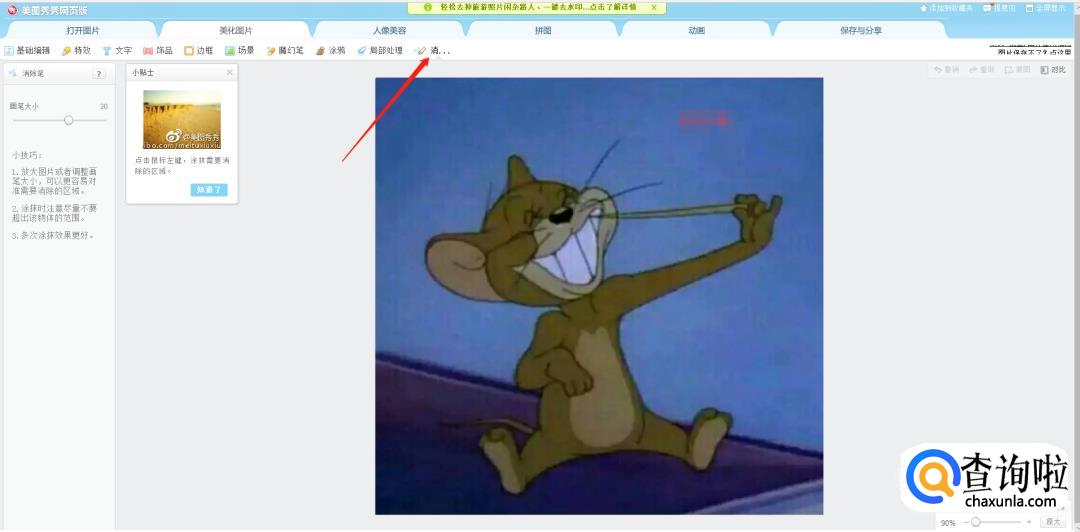 在上方工具栏中选择【消除笔】: