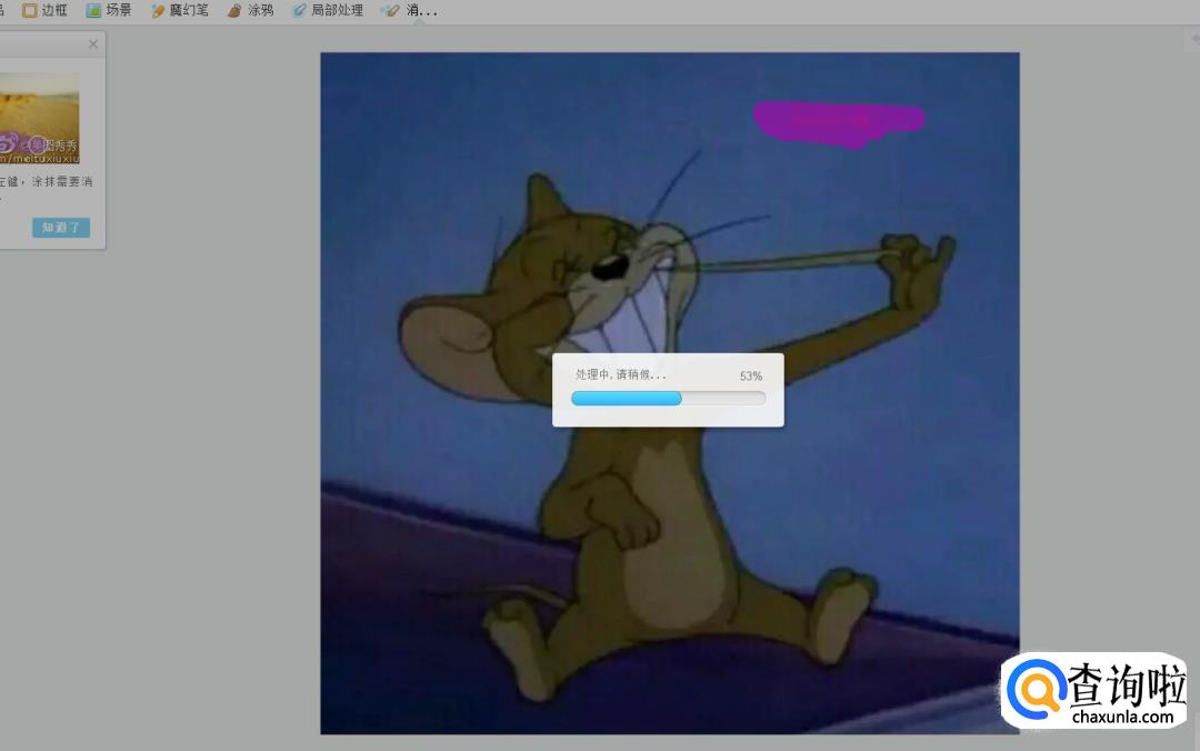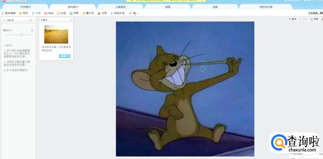 经过数次的拖拉后,可以看见图片的马赛克被去掉了: